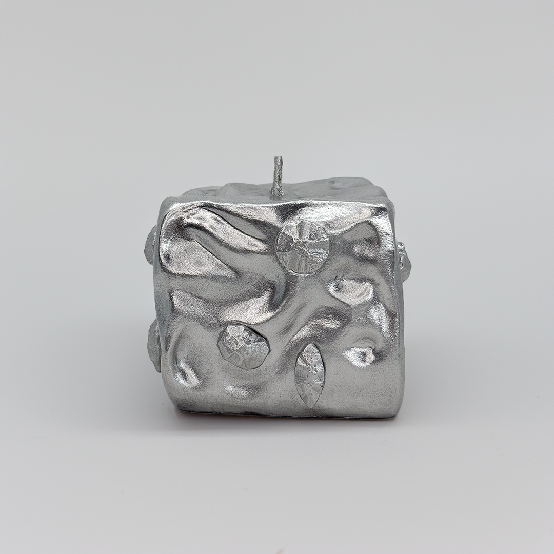The Relic is an original sculptural design — first shaped by hand, then refined into a one-of-a-kind mold created in-house. Each piece is cast and polished individually, achieving its luminous metallic sheen with candle-safe mica.